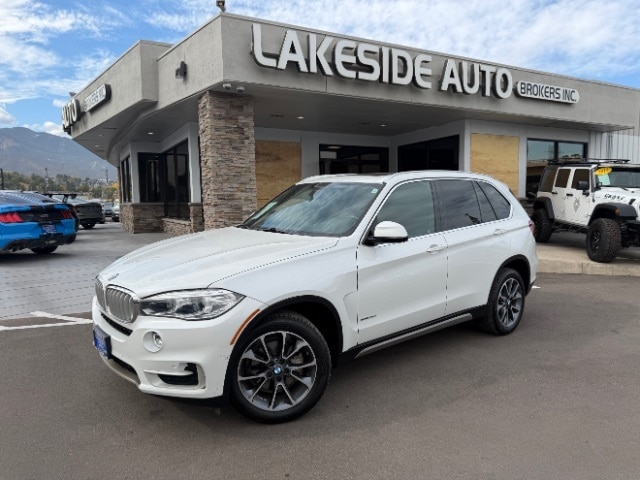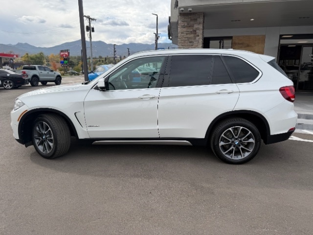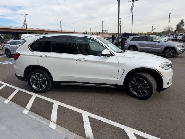 White Metallic 2018 BMW X5 xDrive35i AWD 8-Speed Automatic 3.0L I6 DOHC 24V TwinPower Turbo LOCAL TRADE, ONE OWNER, Mocha Leather, 10 Speakers, 4-Zone Automatic Climate Control, Active Blind Spot Detection, Active Driving Assistant, Apple CarPlay Compatibility, Comfort Access Keyless Entry, Driving Assistance Package, Emergency communication system: BMW Assist eCall, Exterior Parking Camera Rear, Front Bucket Seats, Front dual zone A/C, Front fog lights, Fully automatic headlights, Garage door transmitter, harman/kardon Surround Sound System, Head restraints memory, Head-Up Display, Heated door mirrors, Heated Front Seats, Heated Rear Seats, Heated Steering Wheel, Lane Departure Warning System, Low tire pressure warning, Memory seat, Navigation System, Outside temperature display, Panic alarm, Parking Assistance Package, Parking Assistant, Power door mirrors, Power driver seat, Power moonroof, Power passenger seat, Power windows, Premium Package, Rain sensing wipers, Rear window defroster, Rear window wiper, Remote keyless entry, Satin Aluminum Roof Rails, Security system, SiriusXM Satellite Radio w/1 Year All Access, Speed control, Speed Limit Information, Speed-Sensitive Wipers, Spoiler, Steering wheel memory, Steering wheel mounted A/C controls, Steering wheel mounted audio controls, Surround View Cameras, Telescoping steering wheel, Tilt steering wheel, Turn signal indicator mirrors, Variably intermittent wipers, Wheels: 19" x 9" Lt Alloy Orbit Gray (Style 449).