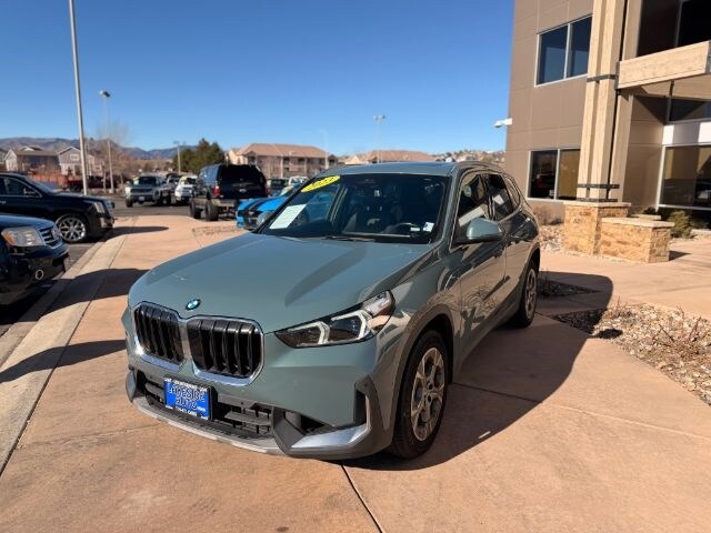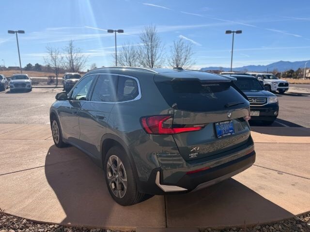 Green Metallic 2023 BMW X1 xDrive28i AWD 7-Speed Automatic 2.0L 4-Cylinder DOHC 16V TwinPower Turbo Alcantara/Sensatec Upholstery, AM/FM radio: SiriusXM with 360L, Apple CarPlay & Android Auto Compatibility, Auto High-beam Headlights, Automatic temperature control, Comfort Access Keyless Entry, Connected Package Pro, ConnectedDrive Services, Emergency communication system: BMW Assist eCall, Exterior Parking Camera Rear, Front dual zone A/C, Heated Front Seats, Heated Front Seats & Steering Wheel, Heated Steering Wheel, Low tire pressure warning, Memory seat, Navigation, Outside temperature display, Panic alarm, Panoramic Moonroof, Power door mirrors, Power driver seat, Power Front Seats, Power Liftgate, Power windows, Rain sensing wipers, Rear window defroster, Rear window wiper, Remote keyless entry, Security system, Speed control, Speed-Sensitive Wipers, Split folding rear seat, Spoiler, Steering wheel mounted audio controls, Tachometer, Telescoping steering wheel, Tilt steering wheel, Turn signal indicator mirrors, Variably intermittent wipers, Wheels: 18" x 7.5" V Spoke Bi-Color, Widescreen Display, Wireless Device Charging.
