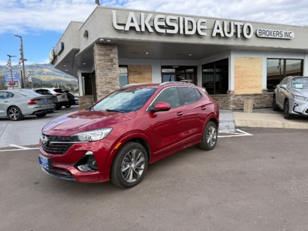 Chili Red Metallic 2021 Buick Encore GX Preferred AWD 9-Speed Automatic ECOTEC 1.3L Turbo 18" Aluminum Wheels, 2 USB Ports w/Auxiliary Input Jack, 2-Way Power Driver Lumbar Control, 8-Way Power Driver Seat Adjuster, Air Conditioning, Auto High-beam Headlights, Cold Weather Comfort Package, Compass, Custom Grille w/Red Accents, Emergency communication system: OnStar and Buick connected services capable, Enhanced Performance 6-Speaker System, Front Bucket Seats, Front fog lights, Fully automatic headlights, Heated door mirrors, Heated Driver & Front Passenger Seats, Low tire pressure warning, Outside temperature display, Panic alarm, Power door mirrors, Power windows, Preferred Equipment Group 1SB, Radio: 8" Diagonal Buick Infotainment System, Rear window defroster, Rear window wiper, Remote keyless entry, Remote Vehicle Starter System, Ride & Handling Suspension, Roof-Mounted Luggage Rack Side Rails, Security system, SiriusXM Radio, Speed control, Split folding rear seat, Spoiler, Sport Touring Package, Steering wheel mounted audio controls, Telescoping steering wheel, Tilt steering wheel, Traction control, Variably intermittent wipers, Wireless Apple CarPlay/Wireless Android Auto.