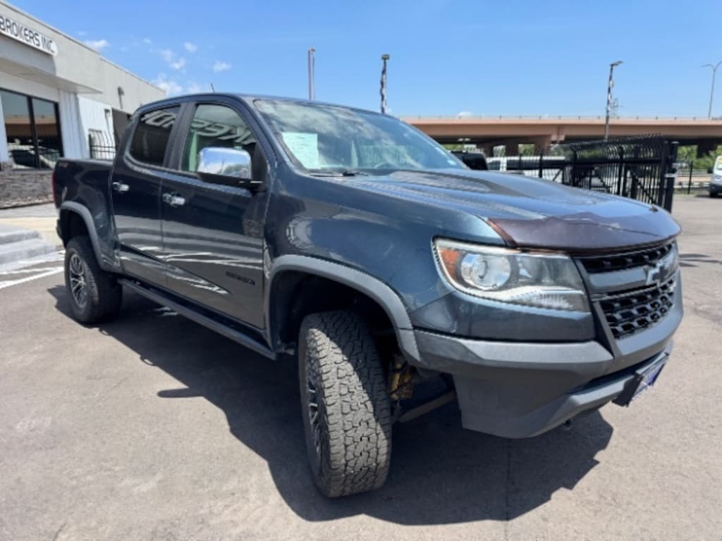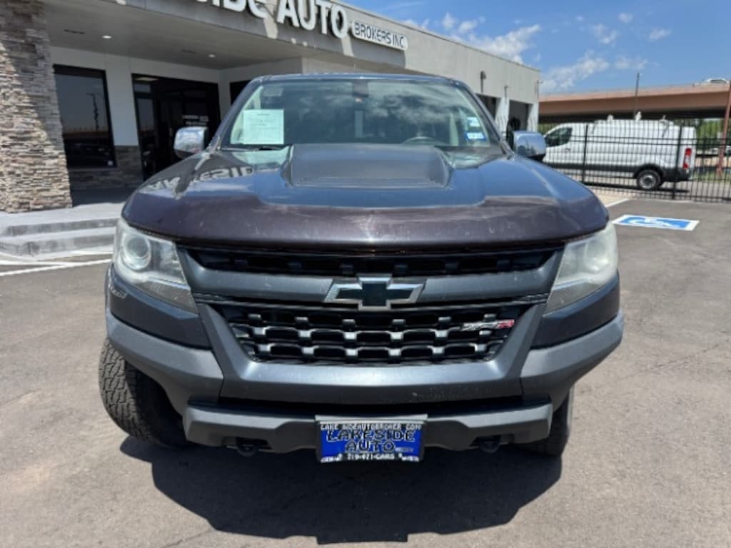 Shadow Gray Metallic 2019 Chevrolet Colorado ZR2 4WD 8-Speed Automatic V6 Navigation, 4WD, 17" x 8" Aluminum Wheels, 2 USB Data Ports w/SD Card Reader, 3.42 Rear Axle Ratio, 4-Way Power Front Passenger Seat Adjuster, ABS brakes, Apple CarPlay, Automatic temperature control, Black Rear Bumpers, Black Spray-On Bedliner w/Chevrolet Logo, Chrome Appearance Package, Chrome Door Handles, Chrome Mirror Caps, Chrome Tailgate Handle (LPO), Driver 6-Way Power Seat Adjuster, Driver-Selectable Full-Locking Front Differential, Driver-Selectable Full-Locking Rear Differential, Electronic Stability Control, Exterior Parking Camera Rear, Front fog lights, Fully automatic headlights, Heated door mirrors, Heated Driver & Front Passenger Seats, Heated steering wheel, Heavy-Duty Trailering Package, Integrated Trailer Brake Controller, Leather-Appointed Seat Trim, Low tire pressure warning, Off-Road Appearance Package, Panic alarm, Polished Exhaust Tip, Power door mirrors, Power windows, Preferred Equipment Group 4ZR, Radio: Chevrolet Infotainment 3 Premium System, Rear window defroster, Remote keyless entry, Security system, SiriusXM Radio, Speed control, Steering wheel mounted audio controls, Tachometer, Telescoping steering wheel, Tilt steering wheel, Tow/Haul Mode, Traction control, Trailering Assist Guideline Hitch Guidance, Variably intermittent wipers.