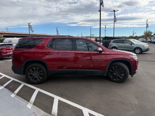 Cajun Red Tintcoat 2020 Chevrolet Traverse RS AWD 9-Speed Automatic 3.6L V6 SIDI VVT AWD, 3rd row seats: split-bench, 7-Passenger Seating (2-2-3 Seating Configuration), ABS brakes, Apple CarPlay/Android Auto, Auto High-beam Headlights, Automatic temperature control, Bose Premium 10-Speaker Audio System Feature, Brake assist, Cargo Package (LPO), Dual SkyScape 2-Panel Power Sunroof, Electronic Stability Control, Emergency communication system: OnStar and Chevrolet connected services capable, Front dual zone A/C, Front fog lights, Fully automatic headlights, Garage door transmitter, Heated door mirrors, Heated front seats, Heated steering wheel, Heavy-Duty Cooling System, High-Intensity Discharge Headlights, Hitch Guidance w/Hitch View, Lane Departure Warning System, Leather-Appointed Seat Trim, Low tire pressure warning, Navigation System, Panic alarm, Power door mirrors, Power driver seat, Power Liftgate, Power passenger seat, Power windows, Preferred Equipment Group 2LT, Premium audio system: Chevrolet MyLink, Rear air conditioning, Rear window defroster, Rear window wiper, Remote keyless entry, Security system, SiriusXM w/360L, Speed control, Steering wheel mounted audio controls, Telescoping steering wheel, Tilt steering wheel, Traction control, Trailering Assist Guidelines, Trailering Equipment, Turn signal indicator mirrors, Variably intermittent wipers, Wheels: 20" Dark Android Painted Aluminum.