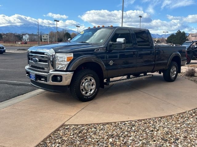 Blue 2015 Ford F-250SD Lariat 4WD TorqShift 6-Speed Automatic with Overdrive Power Stroke 6.7L V8 DI 32V OHV Turbodiesel 4WD, 18" Chrome Clad Cast Aluminum Wheels, 6" Angular Chrome Step Bars, Adjustable pedals, Automatic temperature control, Camper Package, Chrome Exhaust Tip, Chrome Package, Colored Front & Rear Rancho Branded Shocks, Engine Block Heater, Exterior Parking Camera Rear, Extra Heavy-Duty 200-Amp Alternator, Front Bucket Seats, Front dual zone A/C, Front fog lights, Fully automatic headlights, FX4 Off-Road Package, GVWR: 10,000 lb Payload Package, Hill Descent Control, Lariat Interior Package, Low tire pressure warning, Memory Power Adjustable Pedals, Memory Power Heated/Cooled Driver's Seat, Memory PowerScope Trailer-Tow Mirrors, Order Code 608A, Panic alarm, Power driver seat, Power Heated/Cooled Passenger Seat, Power windows, Radio: Premium Sony Audio w/Single CD, Rear Parking Sensors, Rear Stabilizer Bar, Rear window defroster, Remote keyless entry, Remote Start System(s), Roof Marker/Clearance Lamps, Security system, SiriusXM Satellite Radio, Speed control, Split folding rear seat, Steering wheel mounted audio controls, SYNC w/MyFord Touch & SYNC Services, Tailgate Step & Handle, Telescoping steering wheel, Tilt steering wheel, Turn signal indicator mirrors, Unique Chrome Mirror Caps, Upfitter Switches (4), Variably intermittent wipers.