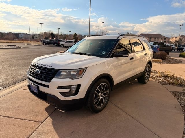 White Platinum Clearcoat Metallic 2016 Ford Explorer Sport 4WD 6-Speed Automatic with Select-Shift 3.5L V6 LOCAL TRADE, 4WD, 20" Machined Aluminum w/Painted Pockets Wheels, 3rd row seats: split-bench, ABS brakes, AM/FM radio: SiriusXM, Automatic temperature control, BLIS Blind Spot Information System, BLIS Plus Inflatable Rear Safety Belts Package, Electronic Stability Control, Emergency communication system: 911 Assist, Equipment Group 400A, Exterior Parking Camera Rear, Front dual zone A/C, Front fog lights, Fully automatic headlights, Heated door mirrors, Inflatable Rear Seatbelts, Low tire pressure warning, Panic alarm, Perforated Leather-Trimmed Heated Bucket Seats, Power driver seat, Power passenger seat, Power windows, Radio: Sony Audio System w/Single-CD/MP3-Capable, Rear air conditioning, Rear window defroster, Rear window wiper, Remote keyless entry, Roof rack: rails only, Security system, Speed control, Steering wheel mounted audio controls, SYNC w/MyFord Touch, Tachometer, Telescoping steering wheel, Tilt steering wheel, Traction control, Turn signal indicator mirrors, Twin Panel Moonroof, Variably intermittent wipers, Voice-Activated Navigation System.