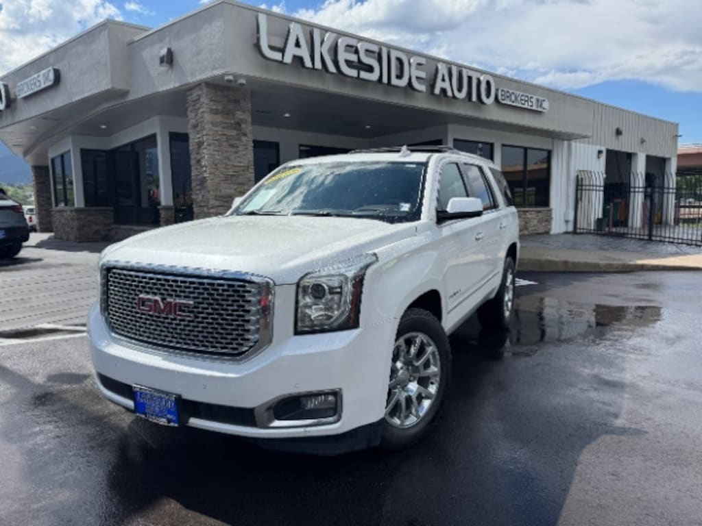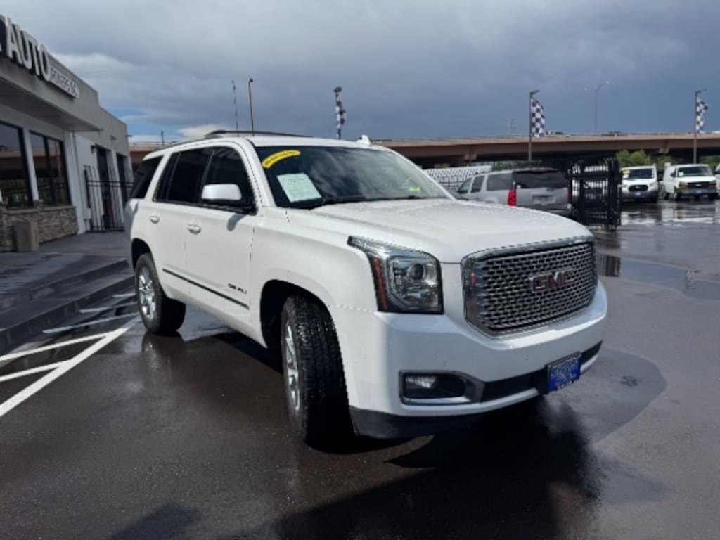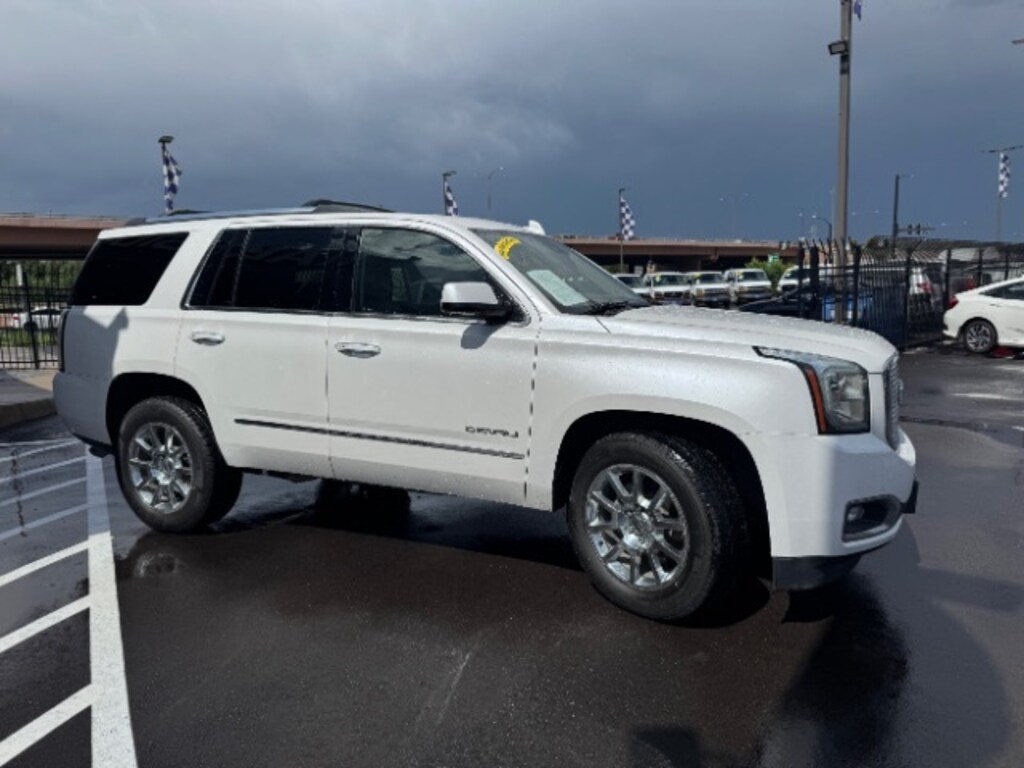 White Frost Tricoat 2017 GMC Yukon Denali 4WD 8-Speed Automatic with Overdrive EcoTec3 6.2L V8 4WD, 17" Disc/Disc VAC Power Brakes, 3rd row seats: split-bench, 5 Auxiliary 12-volt Power Outlets, Adaptive suspension, Adjustable pedals, Apple CarPlay/Android Auto, Automatic temperature control, Black Assist Steps w/Chrome Strip, Bose Centerpoint Premium 10-Speaker Surround Sound, Brake assist, CD Player, Electronic Stability Control, Emergency communication system: OnStar Guidance, Engine Block Heater, Enhanced Driver Alert Package, Exterior Parking Camera Rear, Forward Collision Alert Sensor Indicator, Front Bucket Seats, Front dual zone A/C, Front fog lights, Full-Feature Reclining Bucket Seats, Fully automatic headlights, Hands Free Power Liftgate, Heads-Up Display, Heated & Ventilated Driver & Front Passenger Seats, Heated Leather-Wrapped Steering Wheel, High-Intensity Discharge Headlights, Inside Rear-View Auto-Dimming Mirror, Integrated Trailer Brake Controller, Intellibeam Automatic High Beam On/Off Headlamps, Lane Keep Assist, Low Speed Forward Automatic Braking, Low tire pressure warning, Magnetic Ride Control Suspension Package, Memory Package, Memory seat, Navigation System, NavTraffic, OnStar w/4G LTE, Open Road Package, Panic alarm, Passive Entry System, Pedal memory, Perforated Leather-Appointed Seat Trim, Power driver seat, Power Liftgate, Power Release Second Row Bucket Seats, Power Tilt & Telescopic Steering Column, Power Tilt-Sliding Sunroof w/Express-Open/Close, Power windows, Power-Adjustable Pedals For Accelerator & Brake, Preferred Equipment Group 5SA, Push Button Keyless Start, Pwr Retractable Assist Steps w/Perimeter Lighting, Radio: AM/FM/SiriusXM w/Navigation, Rain sensing wipers, Rear air conditioning, Rear Cross-Traffic Alert, Rear Seat Blu-Ray/DVD Entertainment System, Rear window defroster, Remote Keyless Entry, Security system, Side Blind Zone Alert w/Lane Change Alert, SiriusXM Satellite Radio, Speed control, Steering wheel memory, Steering wheel mounted audio controls, Telescoping steering wheel, Tilt steering wheel, Traction control, Turn signal indicator mirrors, Universal Home Remote, Variably intermittent wipers, Wheels: 20" x 9" Ultra Bright Machined Aluminum, Wireless Charging.