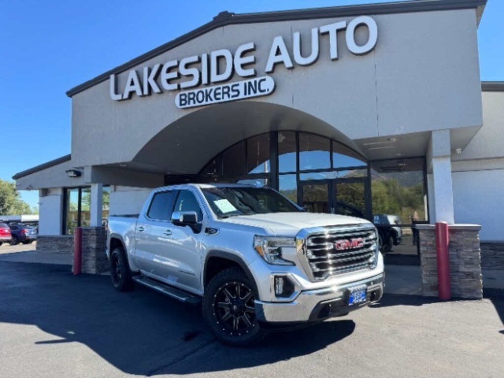 Quicksilver Metallic 2019 GMC Sierra 1500 SLT 4WD 8-Speed Automatic EcoTec3 5.3L V8 Tonneau cover, 8-Speed Automatic, 4WD, Jet Black Leather, 10-Way Power Driver Seat Adjuster w/Lumbar, 10-Way Power Passenger Seat Adjuster w/Lumbar, 170 Amp Alternator, 2 USB Ports, 2 USB Ports (1st Row), 3.23 Rear Axle Ratio, 6" Rectangular Chromed Tubular Assist Steps (LPO), ABS brakes, Apple CarPlay/Android Auto, Automatic temperature control, Auxiliary External Transmission Oil Cooler, Chrome Assist Steps, Electric Rear-Window Defogger, Electrical Lock Control Steering Column, Front Bucket Seats, Front dual zone A/C, Front fog lights, Front Frame-Mounted Black Recovery Hooks, Fully automatic headlights, Heated 2nd Row Outboard Seats, Heated door mirrors, Heated Driver & Front Passenger Seating, Heated steering wheel, Heavy Duty Suspension, Heavy-Duty Rear Locking Differential, Hitch Guidance, Hitch Guidance w/Hitch View, In-Vehicle Trailering App, Integrated Trailer Brake Controller, LED Cargo Area Lighting, Low tire pressure warning, Memory seat, OnStar & GMC Connected Services Capable, Outside temperature display, Panic alarm, Perforated Leather-Appointed Seat Trim, Power Door Locks, Power door mirrors, Power driver seat, Power Front Passenger Windows w/Express Up/Down, Power Front Windows w/Driver Express Up/Down, Power Rear Windows w/Express Down, Power Sliding Rear Window w/Rear Defogger, Premium Bose 7-Speaker Sound System, Radio: Premium GMC Infotainment Sys w/Navigation, Rear Wheelhouse Liners, Remote keyless entry, Remote Vehicle Starter System, Security system, SiriusXM Radio, SLT Convenience Package, SLT Preferred Package, SLT Premium Package, Speed control, Steering Wheel Audio Controls, Steering wheel mounted audio controls, Tachometer, Telescoping steering wheel, Theft Deterrent System (Unauthorized Entry), Tilt steering wheel, Trip computer, Universal Home Remote, Variably intermittent wipers, Ventilated Driver & Front Passenger Seats, Voltmeter, Wheels: 18" x 8.5" 6-Spoke Machined Aluminum, Wireless Charging.