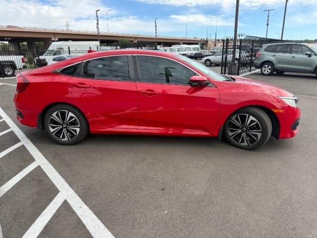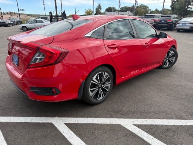 Rallye Red 2017 Honda Civic EX-T FWD CVT 1.5L I-4 DI DOHC Turbocharged Black Cloth, 17" Alloy Wheels, ABS brakes, Apple CarPlay/Android Auto, Automatic temperature control, Brake assist, Compass, Electronic Stability Control, Emergency communication system, Exterior Parking Camera Rear, Front Bucket Seats, Front dual zone A/C, Front fog lights, Fully automatic headlights, Heated door mirrors, Heated front seats, Low tire pressure warning, Panic alarm, Power door mirrors, Power moonroof, Power windows, Radio: 180-Watt AM/FM/HD/SiriusXM Audio System, Rear window defroster, Remote keyless entry, Security system, Speed control, Split folding rear seat, Spoiler, Steering wheel mounted audio controls, Tachometer, Telescoping steering wheel, Tilt steering wheel, Traction control, Variably intermittent wipers.