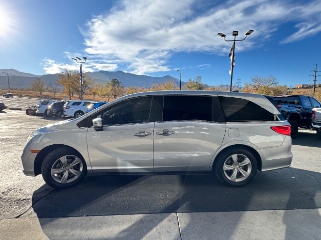 Local Trade Silver Metallic 2018 Honda Odyssey EX-L FWD 9-Speed Automatic 3.5L V6 SOHC i-VTEC 24V 3rd row seats: split-bench, ABS brakes, Apple CarPlay/Android Auto, Automatic temperature control, Blind Spot Information (BSI) System warning, Emergency communication system: HondaLink, Exterior Parking Camera Rear, Front dual zone A/C, Front fog lights, Fully automatic headlights, Garage door transmitter: HomeLink, Heated door mirrors, Heated Front Bucket Seats, Leather Seat Trim, Low tire pressure warning, Memory seat, Outside temperature display, Panic alarm, Power door mirrors, Power driver seat, Power Liftgate, Power moonroof, Power windows, Radio: 160-Watt AM/FM/HD/SiriusXM Audio System, Rear air conditioning, Rear window defroster, Rear window wiper, Remote keyless entry, Security system, Speed control, Speed-Sensitive Wipers, Split folding rear seat, Steering wheel mounted audio controls, Telescoping steering wheel, Tilt steering wheel, Traction control, Turn signal indicator mirrors, Variably intermittent wipers, Wheels: 18" Silver-Painted Alloy.