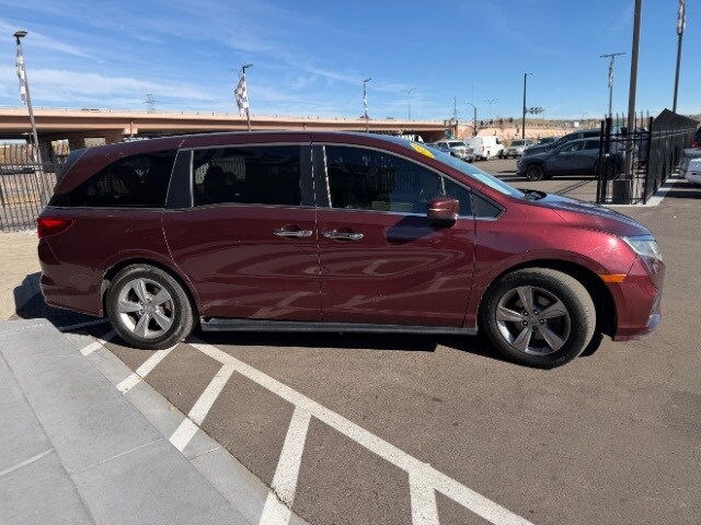 Deep Scarlet Pearl 2019 Honda Odyssey EX-L FWD 9-Speed Automatic 3.5L V6 SOHC i-VTEC 24V ABS brakes, Apple CarPlay/Android Auto, Auto High-beam Headlights, Automatic temperature control, Blind Spot Information (BSI) System warning, Electronic Stability Control, Emergency communication system: HondaLink, Exterior Parking Camera Rear, Forward collision: Collision Mitigation Braking System (CMBS) + FCW mitigation, Front dual zone A/C, Front fog lights, Fully automatic headlights, Garage door transmitter: HomeLink, Heated door mirrors, Heated Front Bucket Seats, Lane departure: Lane Keeping Assist System (LKAS) active, Leather Seat Trim, Low tire pressure warning, Memory seat, Outside temperature display, Panic alarm, Power door mirrors, Power driver seat, Power Liftgate, Power moonroof, Power windows, Radio: 160-Watt AM/FM/HD/SiriusXM Audio System, Rear air conditioning, Rear window defroster, Rear window wiper, Reclining 3rd row seat, Remote keyless entry, Security system, Speed control, Split folding rear seat, Steering wheel mounted audio controls, Telescoping steering wheel, Tilt steering wheel, Traction control, Trip computer, Turn signal indicator mirrors, Variably intermittent wipers.