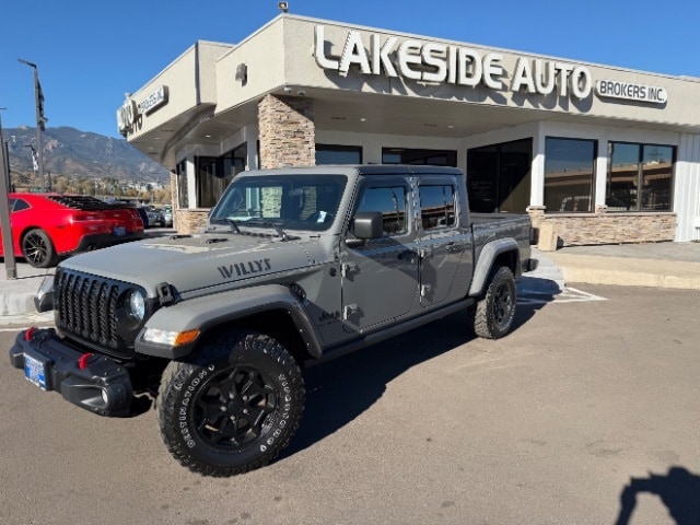Sting-Gray Clearcoat 2021 Jeep Gladiator Willys 4WD 8-Speed Automatic 3.6L V6 24V VVT ONE OWNER, 4-Wheel Drive Decal, 7.0" Touch Screen Display, Air Conditioning w/Auto Temperature Control, Anti-Spin Differential Rear Axle, Apple CarPlay, Automatic Headlamps, Black 3-Piece Hard Top, Cluster 7.0" TFT Color Display, Cold Weather Group, Convenience Group, Daytime Running Lamp System, Deep Tint Sunscreen Windows, Freedom Panel Storage Bag, Front 1-Touch Down Power Windows, Front Bucket Seats, Front fog lights, Front Heavy Duty Red Accent Shock Absorbers, Google Android Auto, GPS Antenna Input, Heated Front Seats, Heated Steering Wheel, Integrated Center Stack Radio, Integrated Voice Command w/Bluetooth, Leather Wrapped Steering Wheel, Low tire pressure warning, MOPAR All-Weather Floor Mats, MOPAR Spray In Bedliner, ParkView Rear Back-Up Camera, Power Heated Mirrors, Power Tailgate Lock, Protection Sill Rails, Quick Order Package 24W Willys, Radio: Uconnect 4 w/7" Display, Rear Heavy Duty Red Accent Shock Absorbers, Rear Sliding Window, Rear Window Defroster, Remote Keyless Entry, Security Alarm, SiriusXM Radio Service, SiriusXM Satellite Radio, Speed control, Split folding rear seat, Steering wheel mounted audio controls, Technology Group, Telescoping steering wheel, Tilt steering wheel, Universal Garage Door Opener, USB Host Flip, Variably intermittent wipers, Willys, Willys Hood Decal.