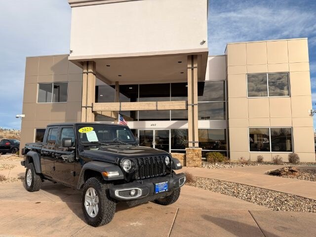 Black Clearcoat 2023 Jeep Gladiator Sport S 4WD 8-Speed Automatic 3.6L V6 24V VVT LOCAL TRADE, ONE OWNER, 3.73 Rear Axle Ratio, 4G LTE Wi-Fi Hot Spot, 8 Speakers, ABS brakes, Air Conditioning, AM/FM radio, Apple CarPlay/Android Auto, Automatic Headlamps, Black 3-Piece Hard Top, Brake assist, Compass, Deep Tint Sunscreen Windows, Electronic Stability Control, Emergency communication system, Freedom Panel Storage Bag, Front 1-Touch Down Power Windows, Front Bucket Seats, Front fog lights, Google Android Auto, Integrated Center Stack Radio, Integrated roll-over protection, Integrated Voice Command w/Bluetooth, Low tire pressure warning, Outside temperature display, ParkView Rear Back-Up Camera, Power Heated Mirrors, Power Tailgate Lock, Quick Order Package 24S Sport S, Radio: Uconnect 4 w/7" Display, Rear Sliding Window, Rear Window Defroster, Remote Keyless Entry, Security Alarm, Speed control, Speed Sensitive Power Locks, Sport S, Steering wheel mounted audio controls, Tachometer, Telescoping steering wheel, Tilt steering wheel, Traction control, Trip computer, USB Host Flip, Variably intermittent wipers, Wheels: 17" x 7.5 Tech Silver Aluminum.