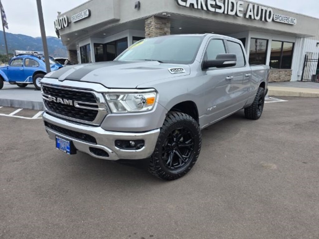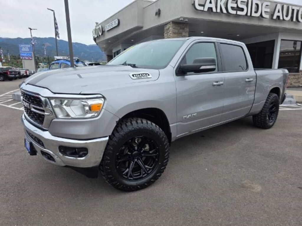 Billet Silver Metallic Clearcoat 2022 Ram 1500 Big Horn/Lone Star 4WD 8-Speed Automatic HEMI 5.7L V8 Multi Displacement VVT, 35/12.5R20LT Tires, Lifted! Bed Liner, 115V Auxiliary Power Outlet, 115V Auxiliary Rear Power Outlet, 2nd Row In Floor Storage Bins, 3.21 Rear Axle Ratio, 33 Gallon Fuel Tank, 400W Inverter, 48V Belt Starter Generator, 4G LTE Wi-Fi Hot Spot, 8.4" Touchscreen Display, ABS brakes, Air Conditioning ATC w/Dual Zone Control, Anti-Spin Differential Rear Axle, Apple CarPlay, Auto-Dimming Exterior Driver Mirror, Auto-Dimming Rear-View Mirror, Big Horn Level B Equipment Group (DISC), Black Premium Power Mirrors (GUL), Bluetooth Handsfree Phone & Audio, Brake assist, Class IV Receiver Hitch, Cluster 7.0" TFT Color Display, Convex Wide-Angle Mirror Insert, Electronic Stability Control, Emergency communication system: SiriusXM Guardian, Exterior Mirrors Courtesy Lamps, Exterior Mirrors w/Supplemental Signals, Front fog lights, Fully automatic headlights, Global Telematics Box Module (TBM), Google Android Auto, Heated door mirrors, Heated Front Seats, Heated Steering Wheel, Heavy-Duty Engine Cooling, Integrated Center Stack Radio, Integrated Voice Command w/Bluetooth, Low tire pressure warning, Media Hub w/2 Charge Only USBs, Panic alarm, ParkSense Front/Rear Park Assist w/Stop, ParkView Rear Back-Up Camera, Power 2-Way Driver Lumbar Adjust, Power 8-Way Driver Seat, Power Adjustable Pedals, Power windows, Quick Order Package 25Z Big Horn, Radio: Uconnect 5 W w/8.4" Display, Rear 60/40 Folding Seat, Rear Dome w/On/Off Switch Lamp, Rear Power Sliding Window, Rear Underseat Compartment Storage, Rear Window Defroster, Remote keyless entry, Remote Start System, Security Alarm, SiriusXM Satellite Radio, Speed control, Split folding rear seat, Steering wheel mounted audio controls, Tachometer, Telescoping steering wheel, Tilt steering wheel, Trip computer, Universal Garage Door Opener, USB Host Flip, Voltmeter.
