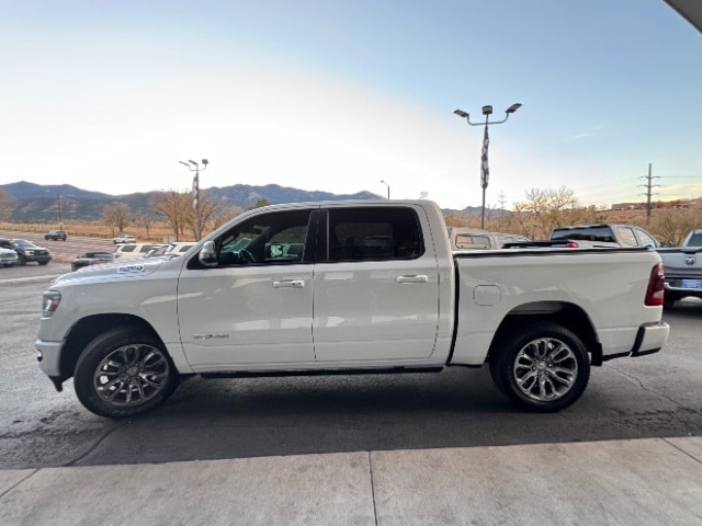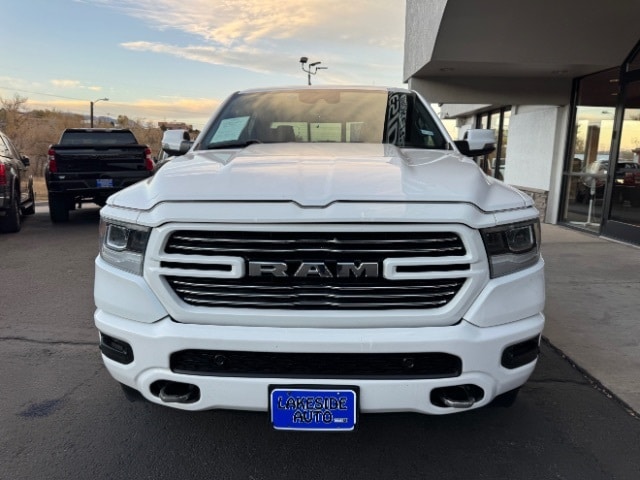 Bright White Clearcoat 2023 Ram 1500 Laramie RWD 8-Speed Automatic HEMI 5.7L V8 Multi Displacement VVT eTorque ONE OWNER, 12" Touchscreen Display, 3.21 Rear Axle Ratio, 48V Belt Starter Generator, 4G LTE Wi-Fi Hot Spot, Apple CarPlay/Android Auto, Auto High Beam Headlamp Control, Automatic temperature control, Blind Spot & Cross Path Detection, Body Color Front Bumper, Chrome Tow Hooks, Class IV Receiver Hitch, Connected Travel & Traffic Services, Dual-Pane Panoramic Sunroof, Exterior Mirrors Courtesy Lamps, Exterior Mirrors w/Heating Element, Exterior Mirrors w/Memory, Exterior Parking Camera Rear, Front dual zone A/C, Front fog lights, Front LED Fog Lamps, Fully automatic headlights, Global Telematics Box Module (TBM), GPS Navigation, HD Radio, Heated Front Seats, Heated Steering Wheel, Integrated Voice Command w/Bluetooth, Laramie Level 1 Equipment Group, Laramie Southwest Edition, Leather Trim 40/20/40 Bench Seat, LED Reflector Headlamps, Memory seat, Panic alarm, ParkSense Front/Rear Park Assist w/Stop, Pedal memory, Power 8-Way Driver & Passenger Seats, Power driver seat, Power Running Boards, Power windows, Quick Order Package 27H Laramie, Radio: Uconnect 5 Nav w/12.0" Display, Rain Sensitive Windshield Wipers, Rear 60/40 Folding Seat, Rear Door Accent Lighting, Rear Power Sliding Window, Rear step bumper, Rear Underseat Compartment Storage, Rear Window Defroster, Remote keyless entry, Remote Tailgate Release, Security system, SiriusXM Radio Service, Speed control, Steering wheel mounted audio controls, Trailer Brake Control, USB Host Flip, Variably intermittent wipers, Ventilated Front Seats, Wheels: 20" x 9" Premium Painted w/Inserts.