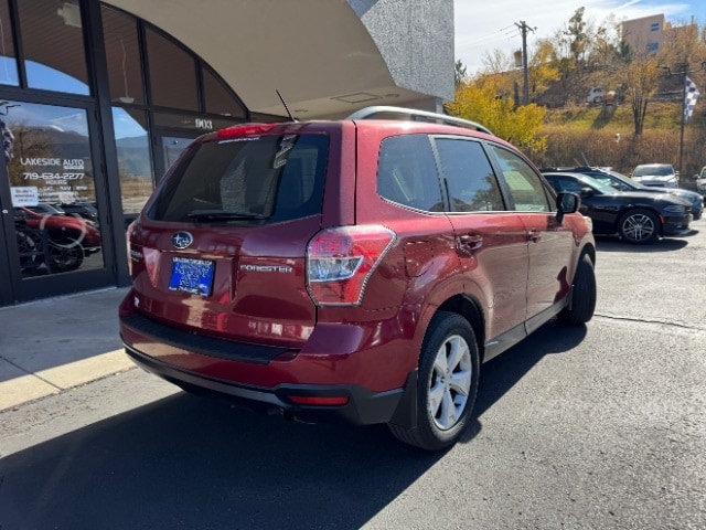 Venetian Red Pearl 2015 Subaru Forester 2.5i Premium AWD Lineartronic CVT 2.5L 4-Cylinder DOHC 16V VVT 17" Alloy Wheels, ABS brakes, Air Conditioning, All-Weather Package, Exterior Parking Camera Rear, Front Bucket Seats, Heated Exterior Mirrors, Heated Front Seats, Low tire pressure warning, Outside temperature display, Panic alarm, Power door mirrors, Power driver seat, Power moonroof, Power windows, Radio: AM/FM Stereo w/HD & Single CD Player, Rear window defroster, Rear window wiper, Remote keyless entry, Roof rack: rails only, Security system, Speed control, Split folding rear seat, Steering wheel mounted audio controls, Telescoping steering wheel, Tilt steering wheel, Traction control, Variably intermittent wipers, Windshield Wiper De-Icer.