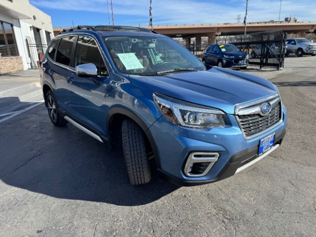 Horizon Blue Pearl 2020 Subaru Forester Touring AWD Lineartronic CVT 2.5L 4-Cylinder DOHC 16V VVT Aero Crossbar Set, Auto-Dimming Mirror w/Compass & HomeLink, Automatic temperature control, Electronic Stability Control, Emergency communication system: STARLINK Safety and Security (Subscription Required), Exterior Parking Camera Rear, Front dual zone A/C, Front fog lights, Fully automatic headlights, harman kardon 576W Amp & Speaker System, Heated door mirrors, Heated Front Bucket Seats, Heated steering wheel, Low tire pressure warning, Memory seat, Paddle-Shift Control Switches, Panic alarm, Perforated Leather-Trimmed Upholstery, Power door mirrors, Power driver seat, Power Liftgate, Power moonroof: Panoramic, Power windows, Radio: Subaru Starlink 8.0" Multimedia Nav System, Rear window defroster, Rear window wiper, Remote keyless entry, Security system, Speed control, STARLINK/Apple CarPlay/Android Auto, Steering wheel mounted audio controls, Telescoping steering wheel, Tilt steering wheel, Traction control, Turn signal indicator mirrors, Variably intermittent wipers, Wheels: 18" x 7.0J Blk Machine Touring Alum Alloy.