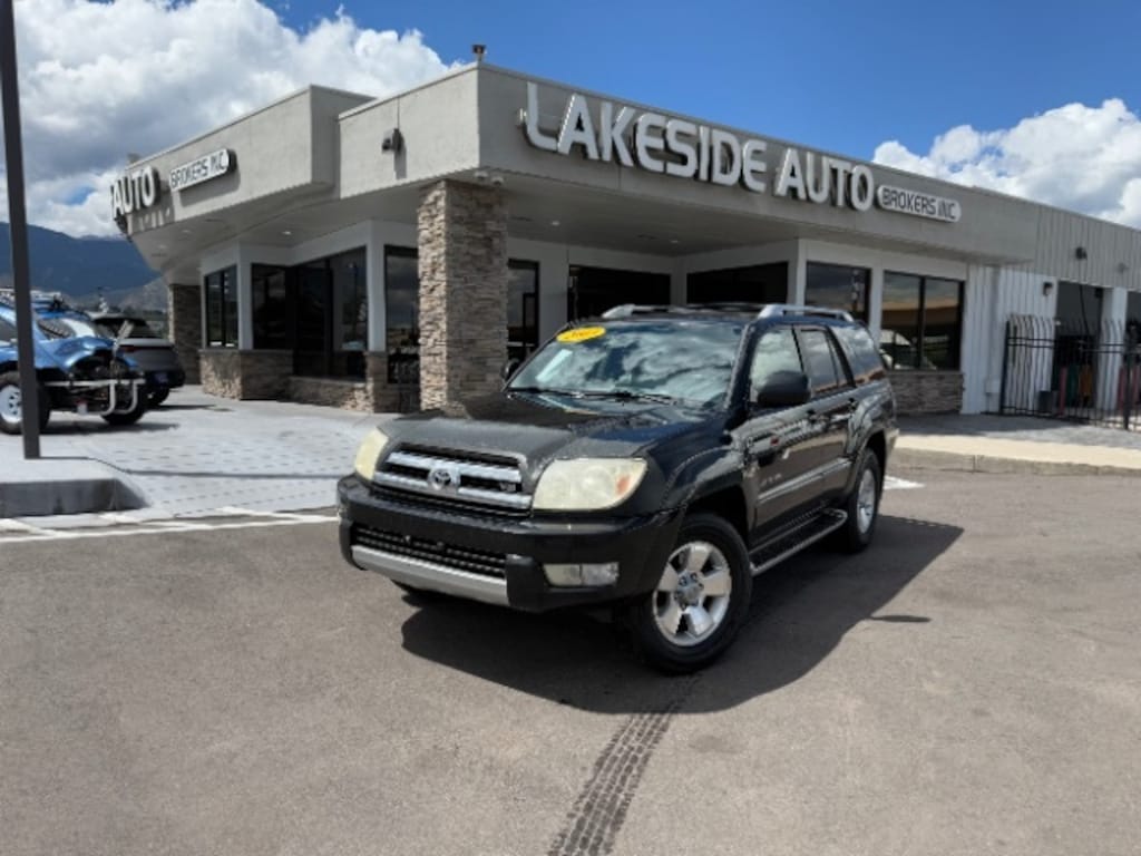 Black 2003 Toyota 4Runner Limited 4WD 5-Speed Automatic with Overdrive 4.7L V8 SMPI DOHC 4.7L V8 SMPI DOHC, 4WD, Stone Leather, 17" x 7.5" JJ Aluminum Wheels, 6 Speakers, ABS brakes, AM/FM radio, Automatic temperature control, Brake assist, Cassette, CD player, Compass, Electronic Stability Control, Front Bucket Seats, Front dual zone A/C, Front fog lights, Front wheel independent suspension, Fully automatic headlights, Garage door transmitter: Homelink, Heated door mirrors, Leather Power Heated Seats, Panic alarm, Power door mirrors, Power driver seat, Power passenger seat, Power windows, Rear window defroster, Rear window wiper, Remote keyless entry, Security system, Speed control, Split folding rear seat, Steering wheel mounted audio controls, Tachometer, Telescoping steering wheel, Tilt steering wheel, Traction control, Trip computer, Variably intermittent wipers, X-REAS Shock Absorber.
