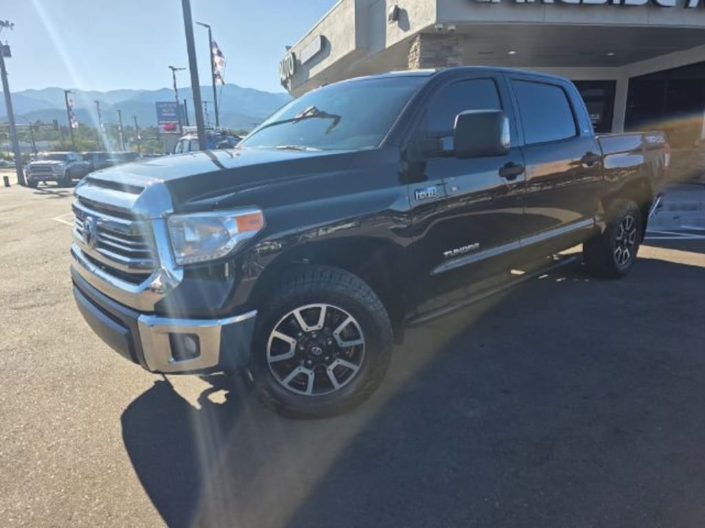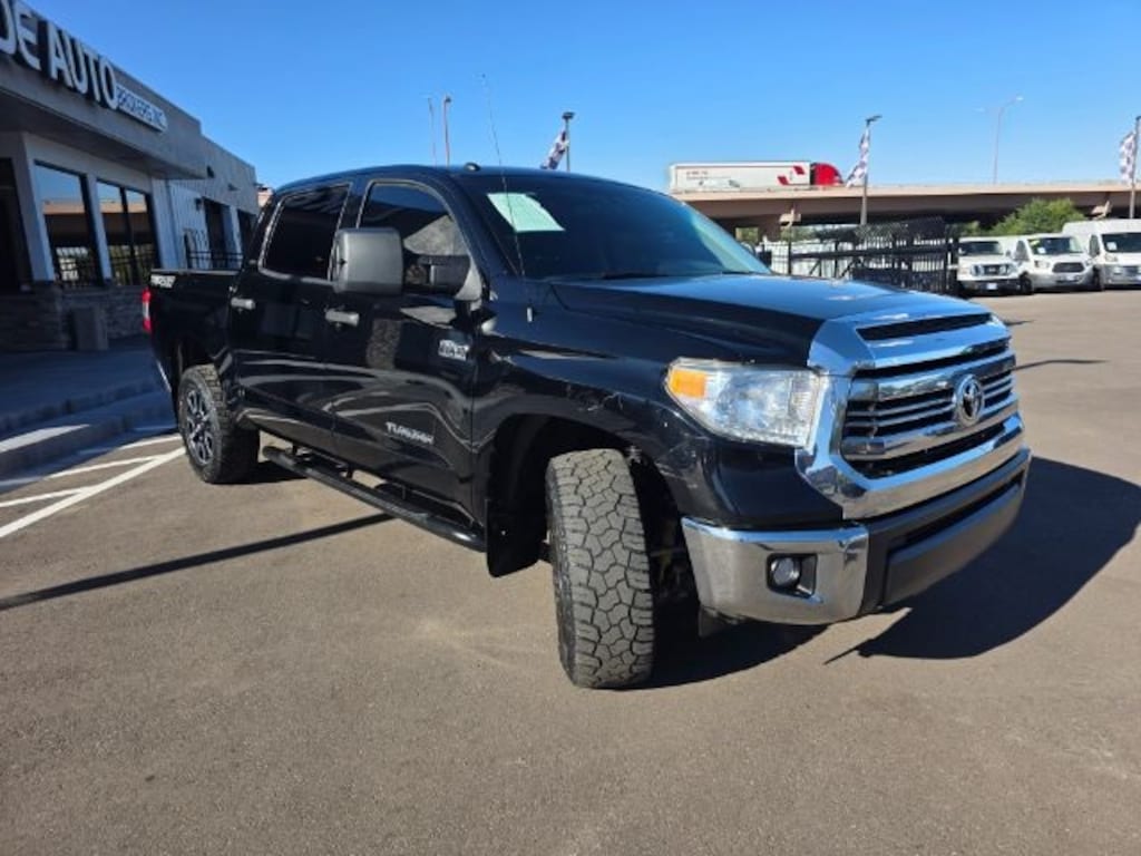 Black 2017 Toyota Tundra SR5 5.7L V8 4WD 6-Speed Automatic Electronic with Overdrive 5.7L 8-Cylinder SMPI DOHC Bed Liner, 4WD, Black Cloth, ABS brakes, Air Conditioning, Exterior Parking Camera Rear, Fabric Seat Trim, Fabric Seat Trim w/TRD Off-Road Package, Front fog lights, Heated door mirrors, Low tire pressure warning, Navigation System, Outside temperature display, Overhead console, Panic alarm, Power door mirrors, Power windows, Radio: Entune Audio Display AM/FM/HD w/CD Player, Rear step bumper, Rear window defroster, Remote keyless entry, SIRIUSXM Satellite Radio, Speed control, Split folding rear seat, Steering wheel mounted audio controls, Tachometer, Tilt steering wheel, Trail-Tuned Bilstein Shock Absorbers, TRD Off Road Package, TRD Off-Road Graphics, Trip computer, Variably intermittent wipers, Voltmeter, Wheels: 18" x 8J Split 5-Spoke TRD Off-Road Alloy.